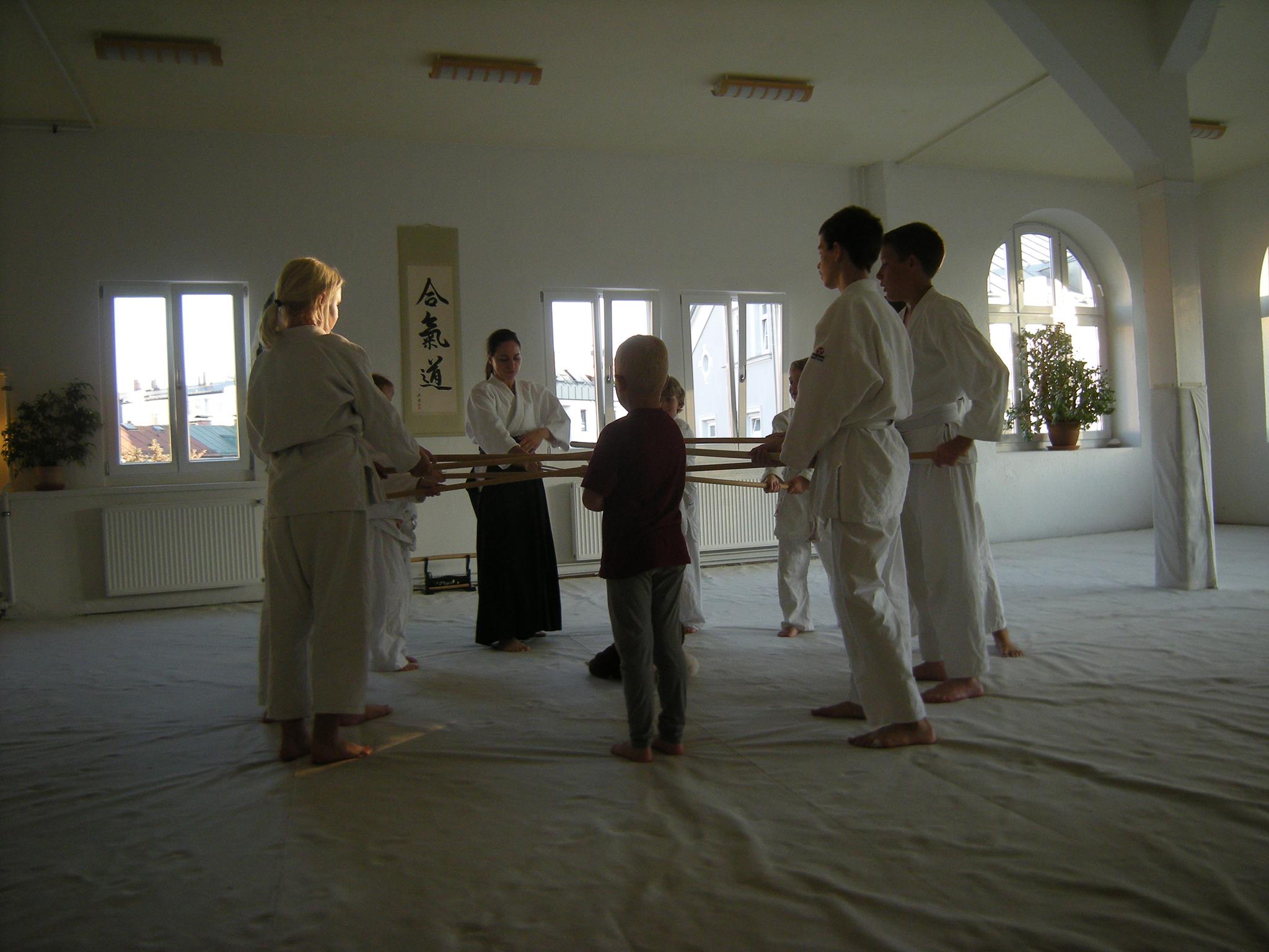 Durch regelmäßiges Aikido Training wird erlernt, sich gewaltfrei mit Anderen auseinander zu setzen. Bei uns im Shusoku Dojo lernen die Kinder und die Jugendlichen Körpergefühl und Konzentrationsfähigkeit auf der Basis einer traditionellen Kampfkunst. Deshalb entwickelt sich auf natürliche Weise ein gesundes Selbstvertrauen. Es soll die Fähigkeit entstehen, auch in schwierigen Situationen ruhig und gelassen zu reagieren. Dazu gehören selbstverständlich die Freude an gesunder Bewegung und das gemeinsame Üben einer effektiven Selbstverteidigungskunst.